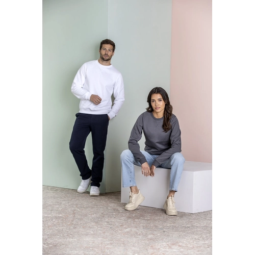Vêtements promotionnels durables. Col rond. Empiècement en V côtelé plat au centre devant. Taille ajustée pour une coupe flatteuse. Brossé à l'intérieur. Col côtelé en tricot plat. Poignets côtelés plats. Ourlet du bas en tricot plat. Bande de propreté bicolore. Demi Lune. Étiquette principale en transfert pour un meilleur confort.