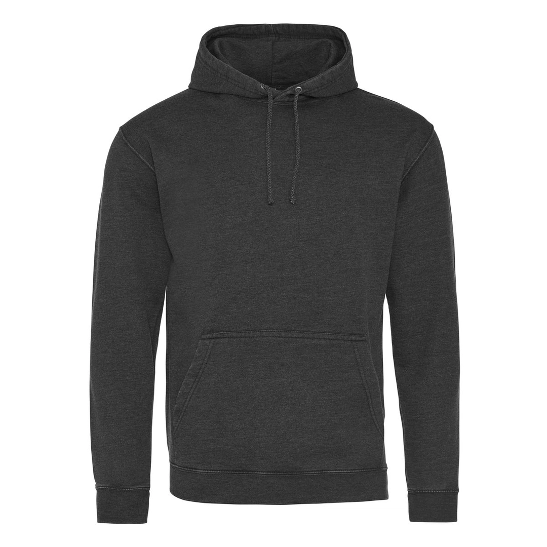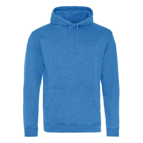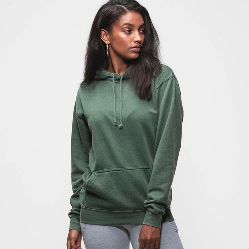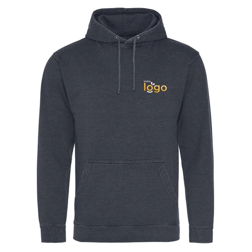 55% coton ring spun, 45% polyester. Sweat aspect lavé, toucher doux, cordons plats lavés dans la même teinte, coutures à double aiguille, capuche doublée, poche kangourou, poignets et ourlet du bas côtelés, étiquette détachable.