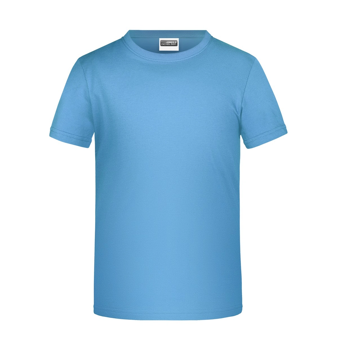 100% coton. T-shirt pour homme avec col rond, single jersey, bande de col avec élasthanne, étiquette Tear-Off.