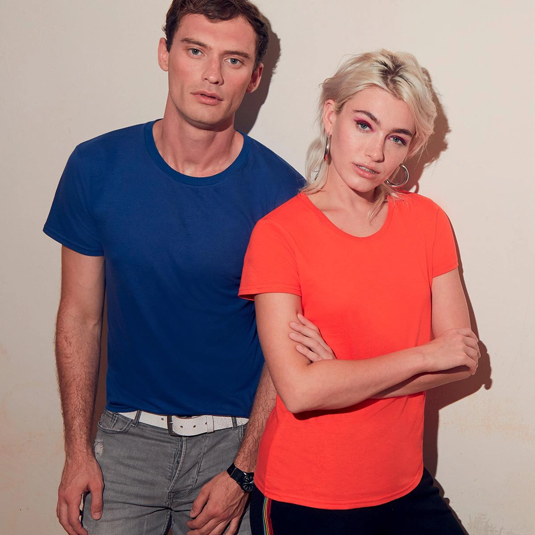 100% coton peigné. T-shirt doux au toucher, coupe slim, structure avec buste tubulaire,étiquette détachable.