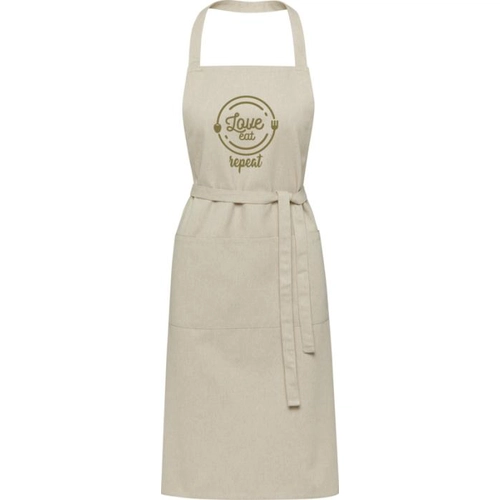 Notre Tablier Aware™ est bien plus qu'un simple accessoire de cuisine. Il incarne la fusion parfaite entre durabilité, confort et personnalisation. Ce tablier est conçu avec soin, en utilisant un mélange de 65% de polyester recyclé et 35% de coton recyclé (240 g/m²). Ce choix de matériaux rend notre tablier à la fois épais, solide et confortable à porter, offrant une qualité supérieure pour vos besoins culinaires.