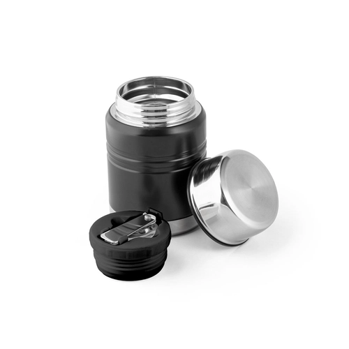Le thermos est doté d'une cuillère pliable intelligemment conçue pour se ranger à l'intérieur du couvercle, maximisant ainsi la praticité sans compromettre l'espace. Son design élégant et sa construction robuste font de ce thermos un compagnon idéal pour les repas en déplacement, les pique-niques, ou les longues journées au bureau.