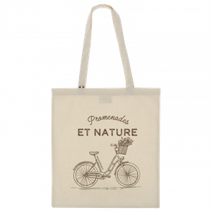 Sac shopping confectionné en France, supporte une charge maximale de 8-9 kg.