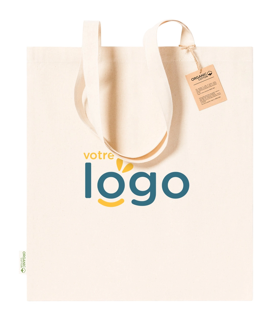 Tote bag en coton bio avec anses longues. 100% coton biologique, 180 g/m².