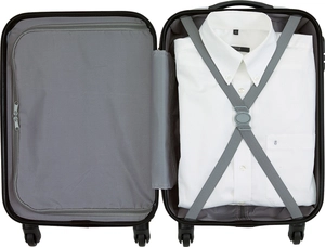 Le système trolley rétractable et la poignée facilitent le transport, tandis que les quatre roues permettent une mobilité fluide et sans effort. Le cadenas à chiffres assure la sécurité de vos affaires. Cette valise répond aux dimensions des bagages cabine des compagnies low-cost, ce qui en fait un choix parfait pour les voyages en avion.