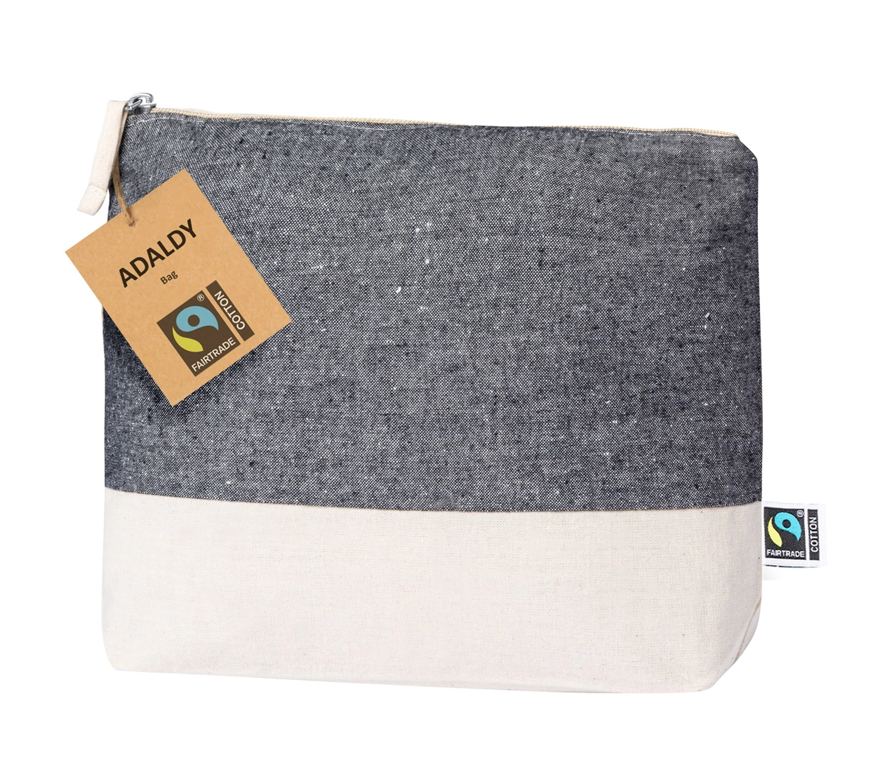 Trousse de maquillage zippée bicolore en coton Fairtrade, labélisée Fairtrade. 100% coton équitable, 180 g/m².