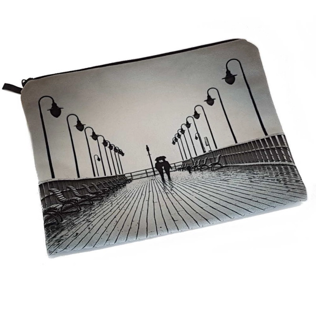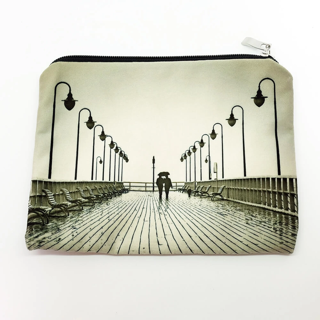 Trousse plate en velours imprimé quadri avec fermeture zippée (coloris au choix à partir de 250 pièces).