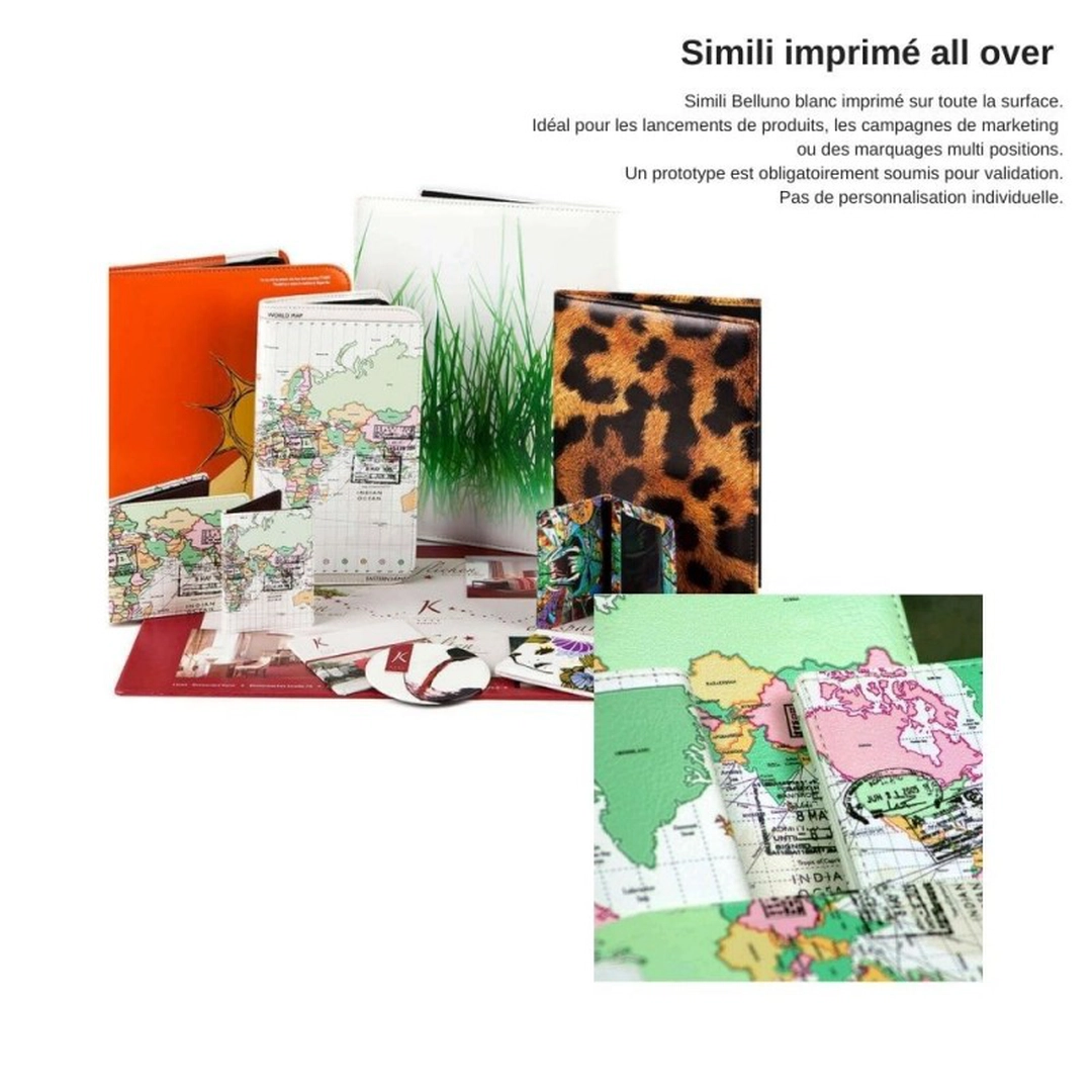 Simili Belluno ou Torino: Le simili Belluno a un aspect cuir véritable tandis que le simili Torino est effet gomme (soft touch). Ils sont tous les deux disponibles dans un large choix de coloris avec un débossage (marquage en creux) au changement de couleur unique, même sur les détails les plus fins.