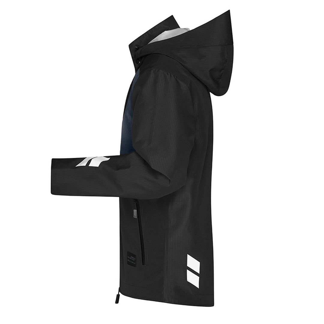 Les détails de haute qualité comprennent des coutures étanches, une fermeture éclair YKK à deux voies dissimulées sur toute la longueur avec rabat-tempête, des éléments réfléchissants sur les poignets et les côtés, des poches zippées et un panneau arrière prolongé.