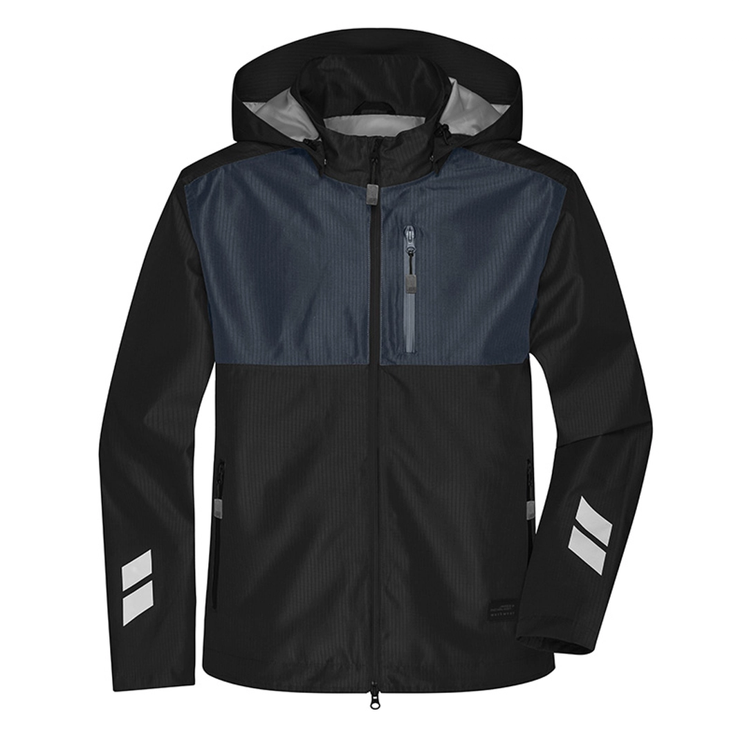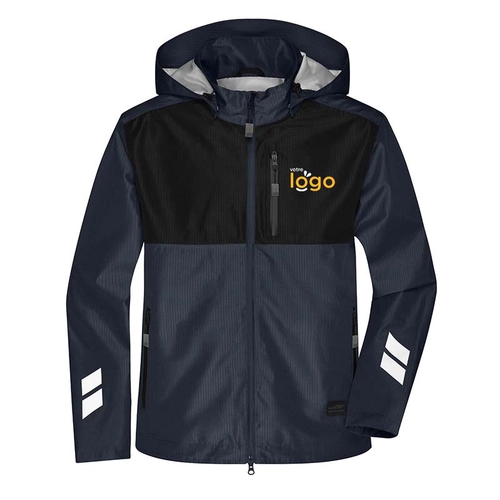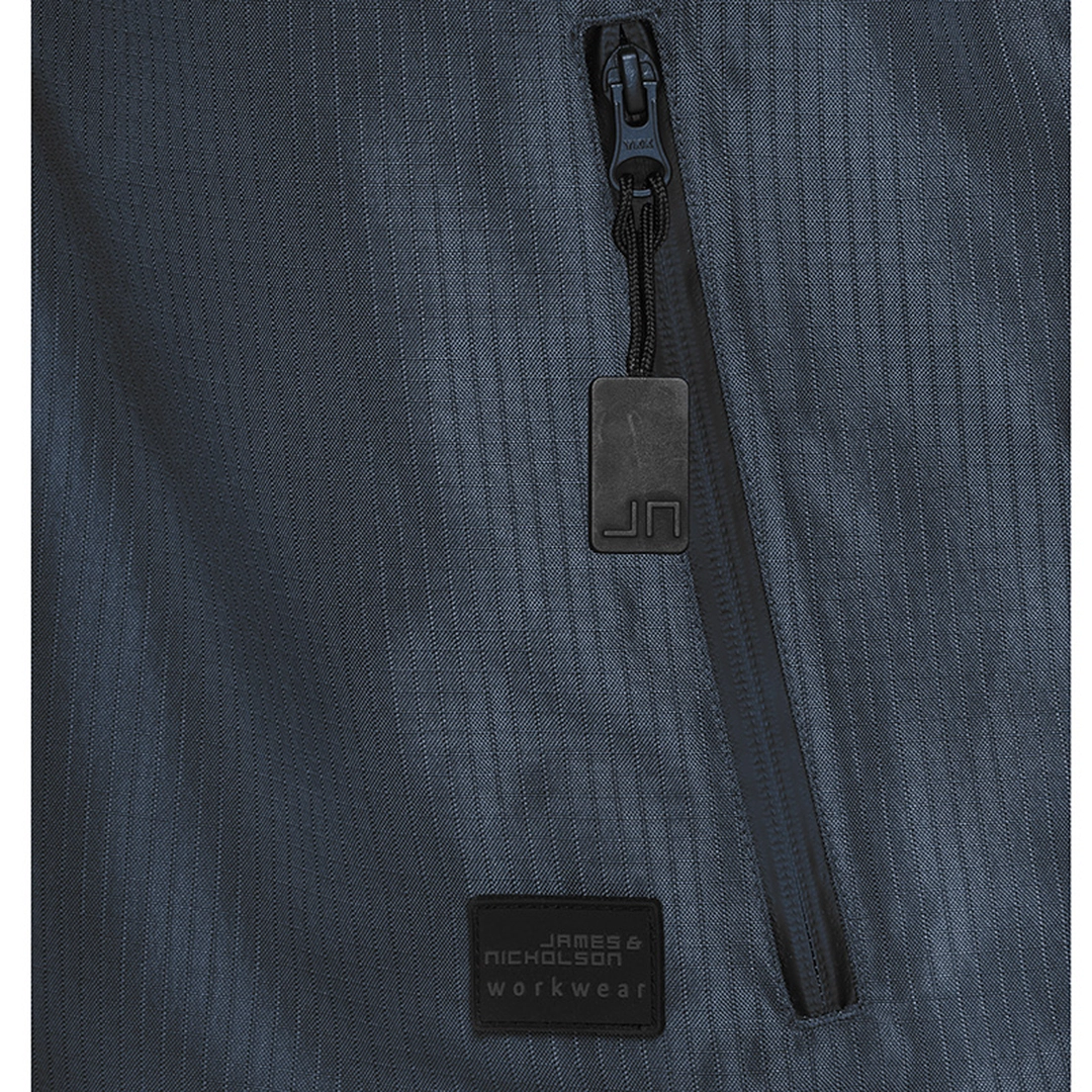 Le tissu rip-stop durable et robuste est fabriqué en polyester recyclé et combine d'excellentes performances imperméables/respirantes dans une veste de travail fonctionnelle.