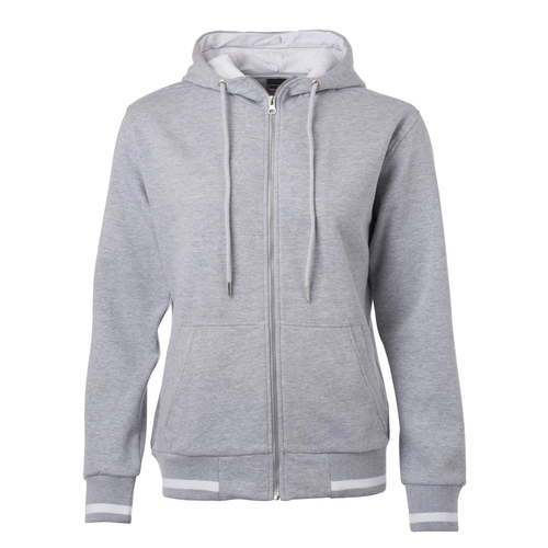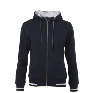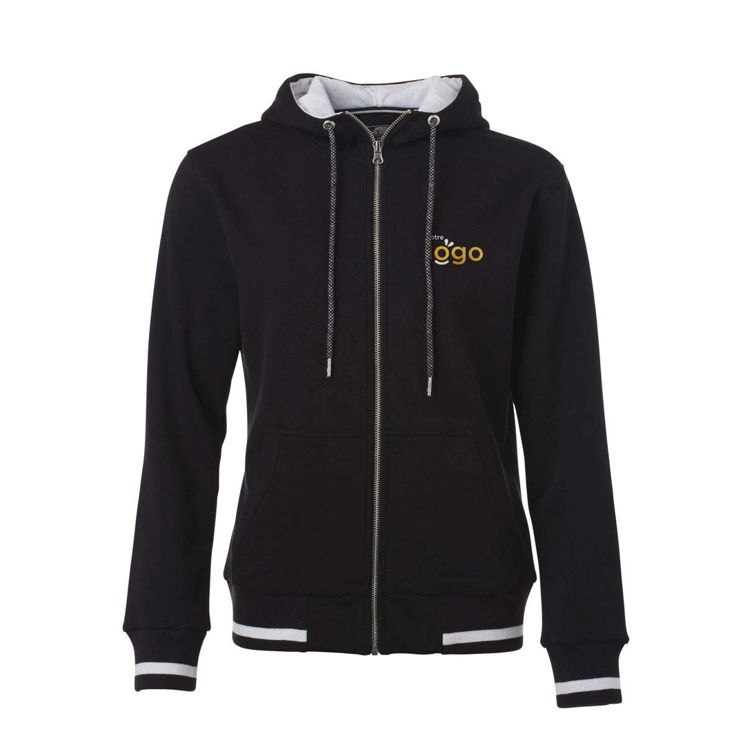 Tissu extérieur (300 g/m²): 80% coton, 20% polyester. Coton de haute qualité, couche polaire interne, manches en bord côte avec elasthanne, rayures contrastées à la ceinture et aux manches, capuche double couche avec couleur intérieure contrastée, zip métal YKK, poche kangourou, légèrement cintrée, coupe décontractée.